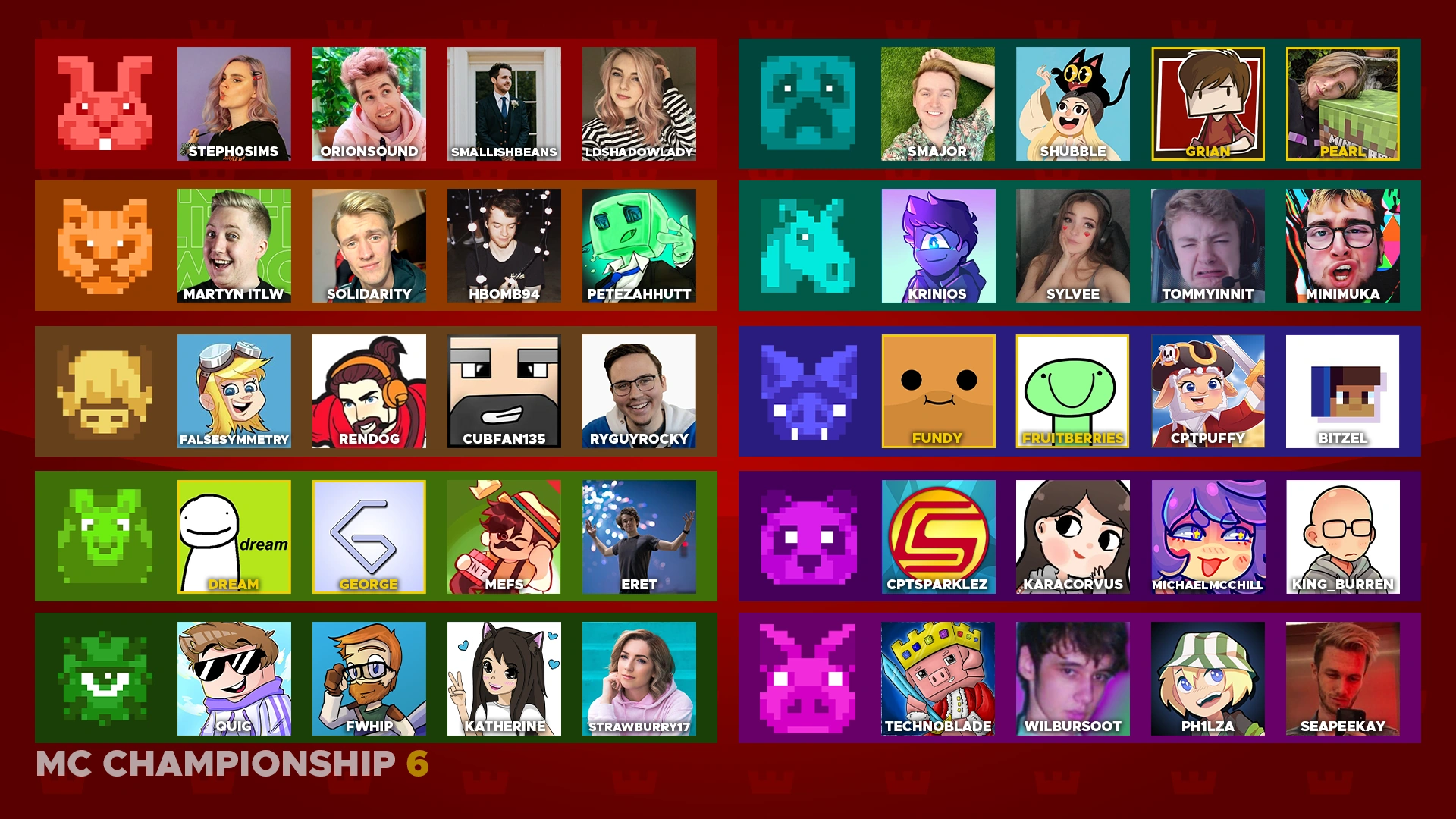 All the players and teams in MC Championship 6 (May 28, 2020 and May 30, 2020)